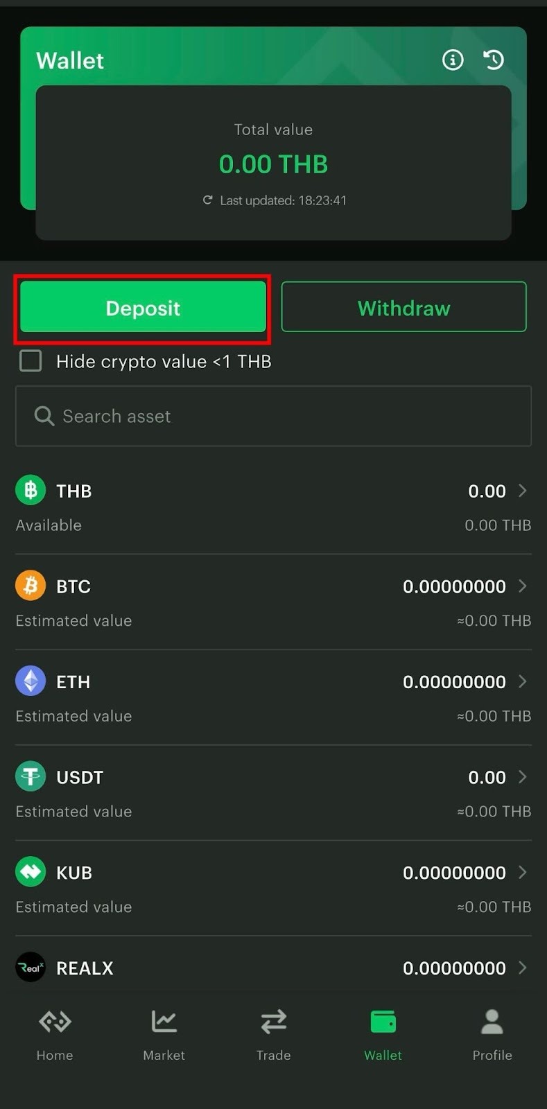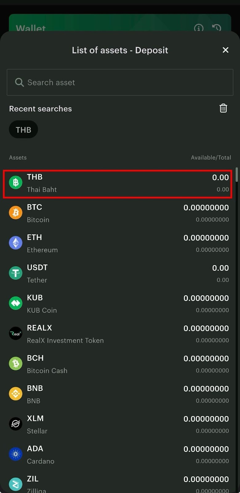 3. Tap “Deposit” and select THB.