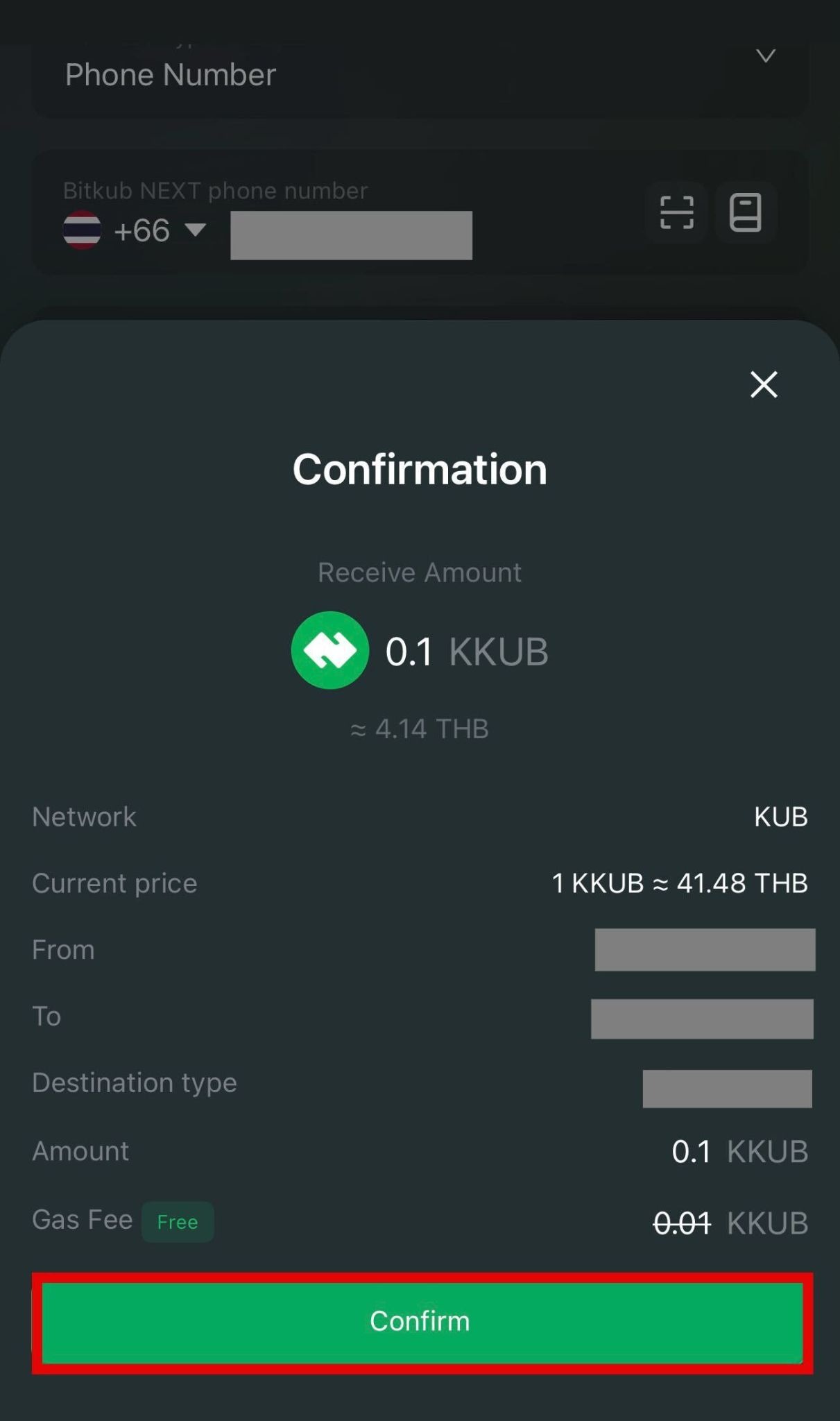 7. Please recheck the transfer details and tap “Confirm” to confirm the transaction to Bitkub Online.