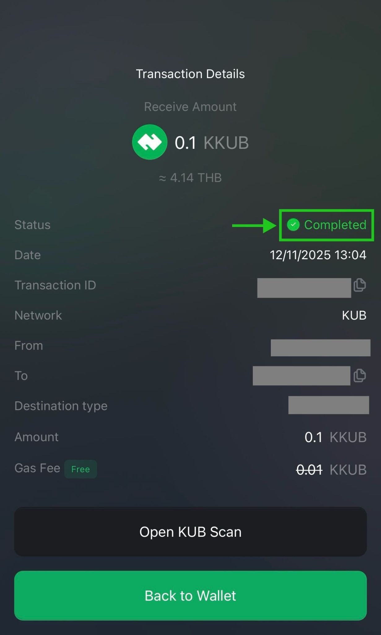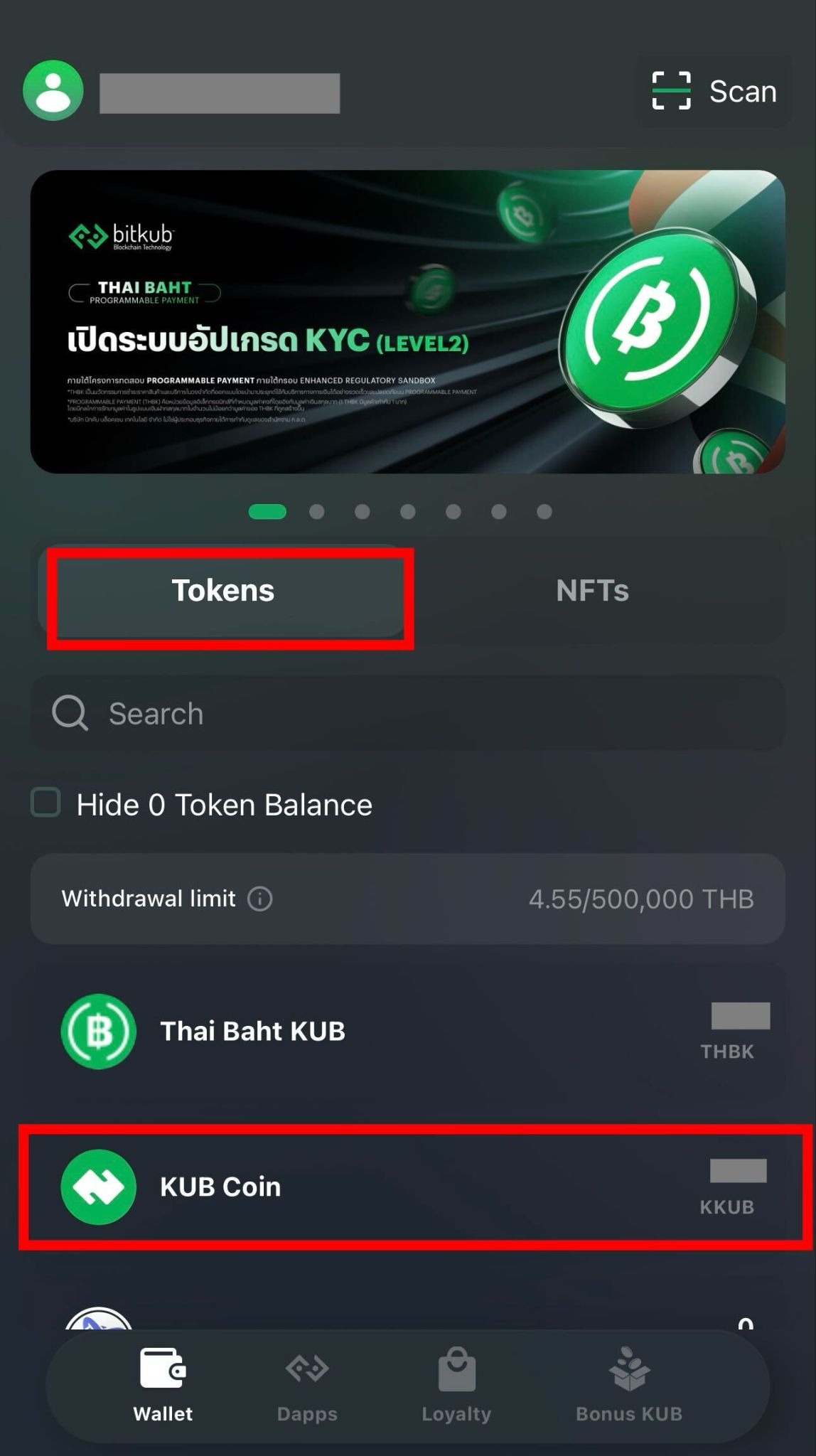 You can transfer tokens from KUB Wallet to Bitkub Online by following the instructions below.
