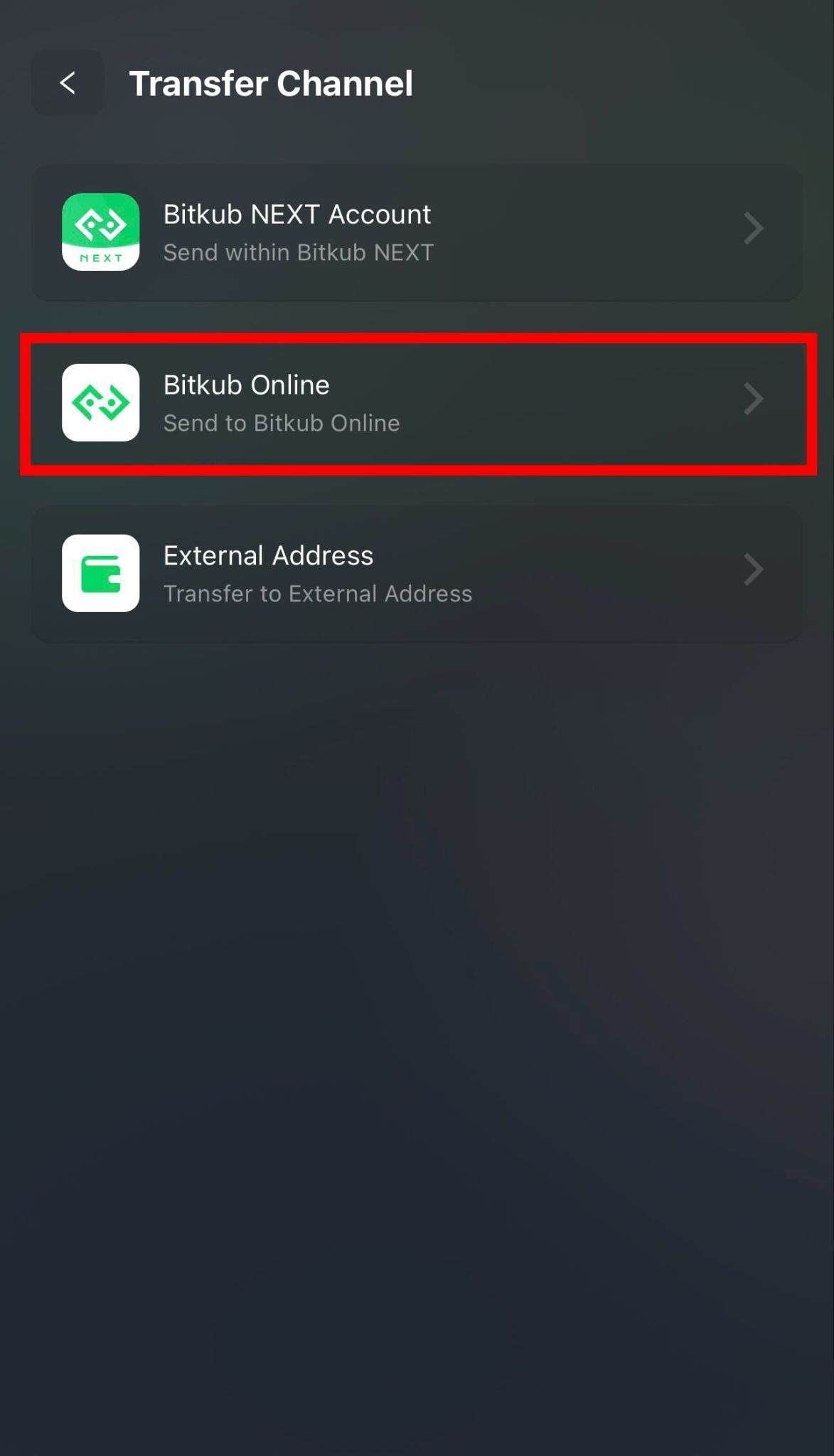 4. Select “Bitkub Online” to transfer tokens to the destination.
