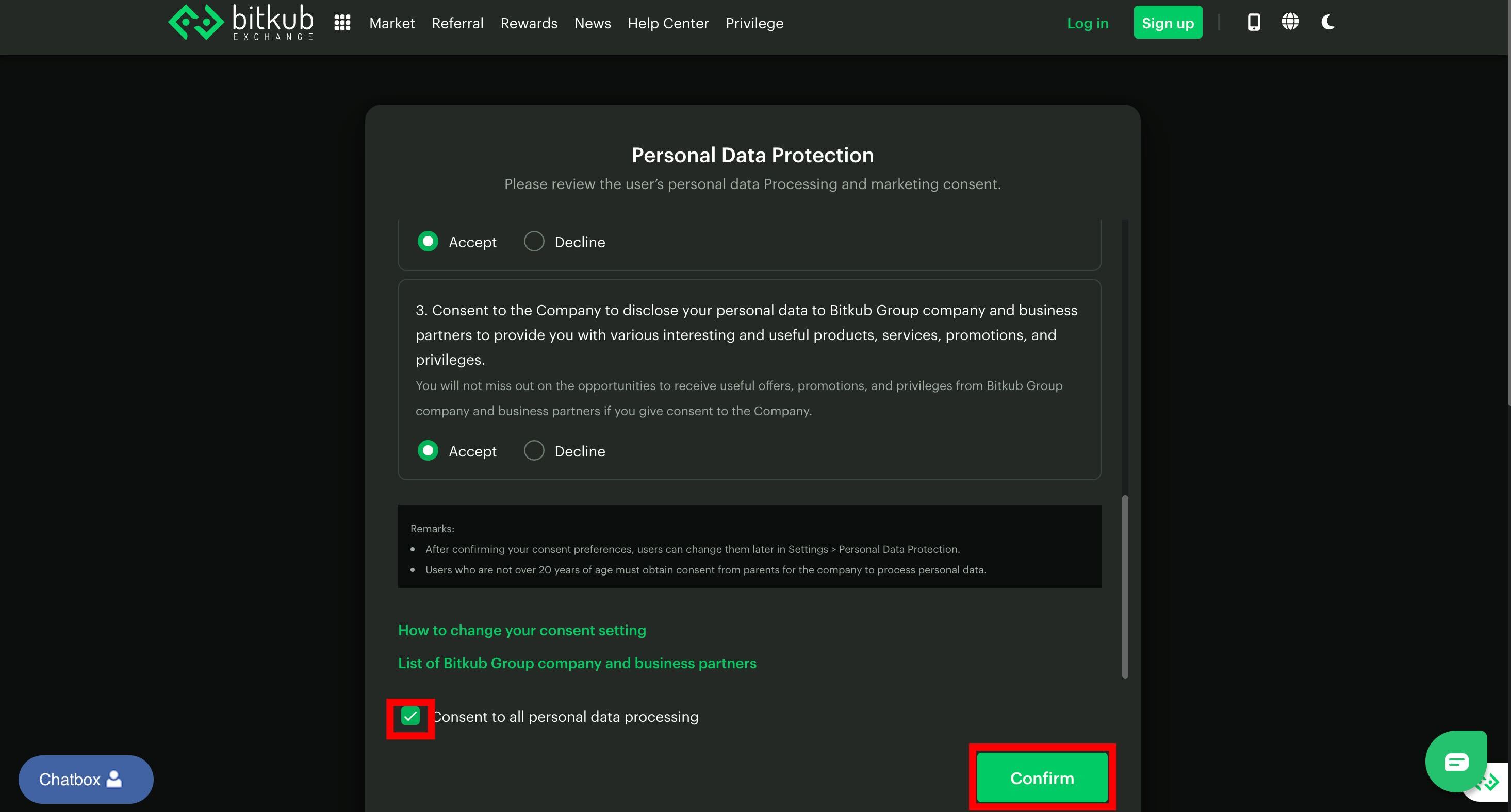 - You can give consent to Bitkub to notify you of news, updates, and product recommendations from us and/or our business affiliates, and to disclose your data to Bitkub for analysis.