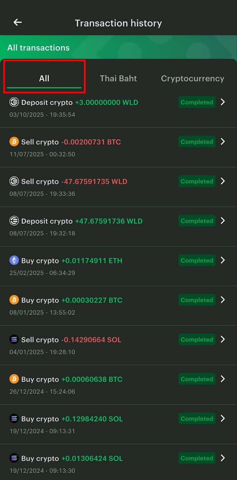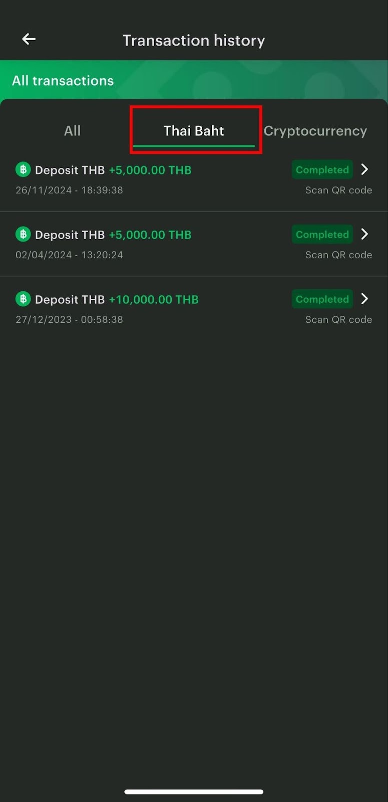 5. Tap on "Thai Baht" to see your Thai Baht transaction status.