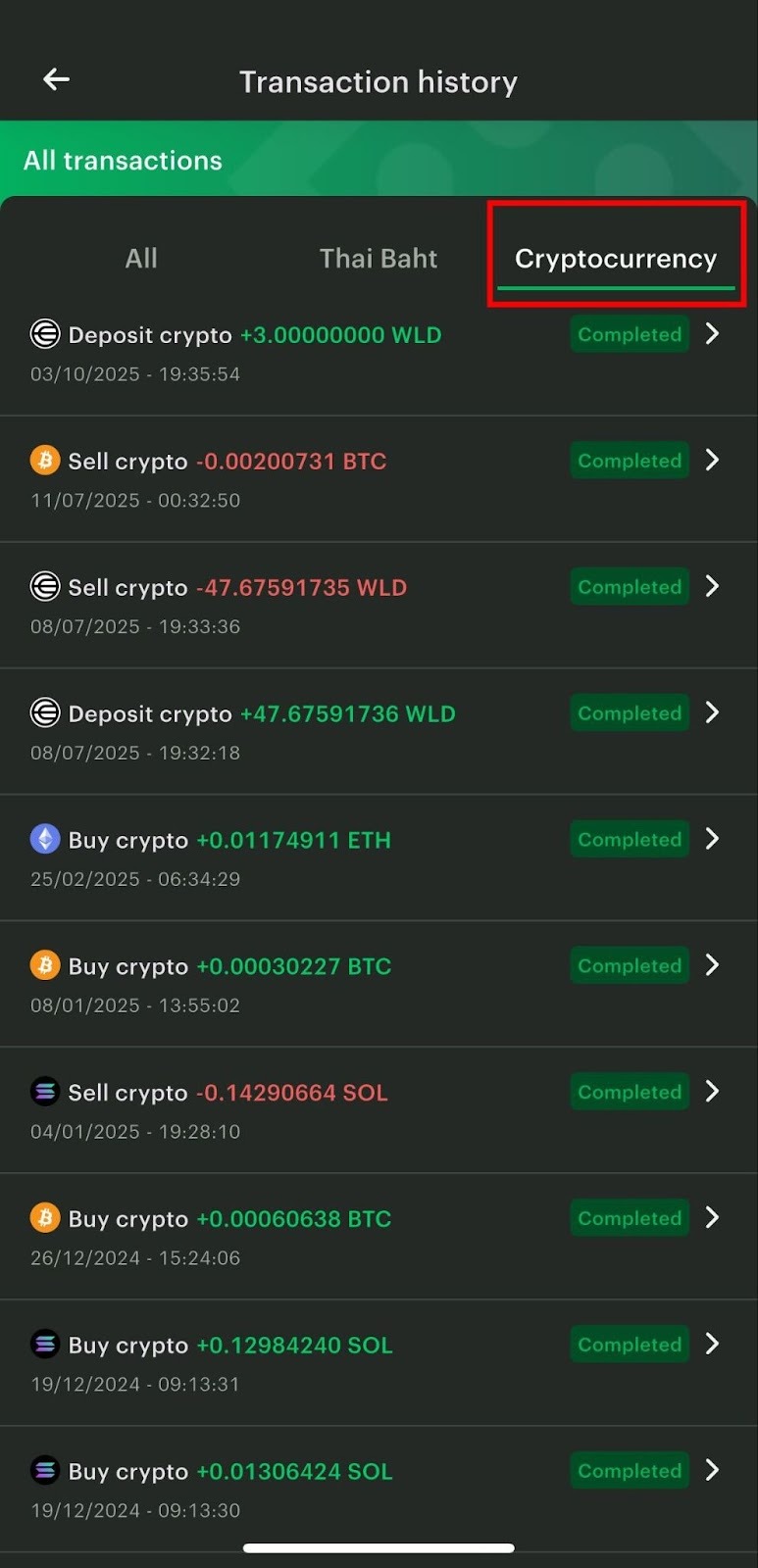 6. Tap on "Cryptocurrency" to see your cryptocurrency transaction status.
