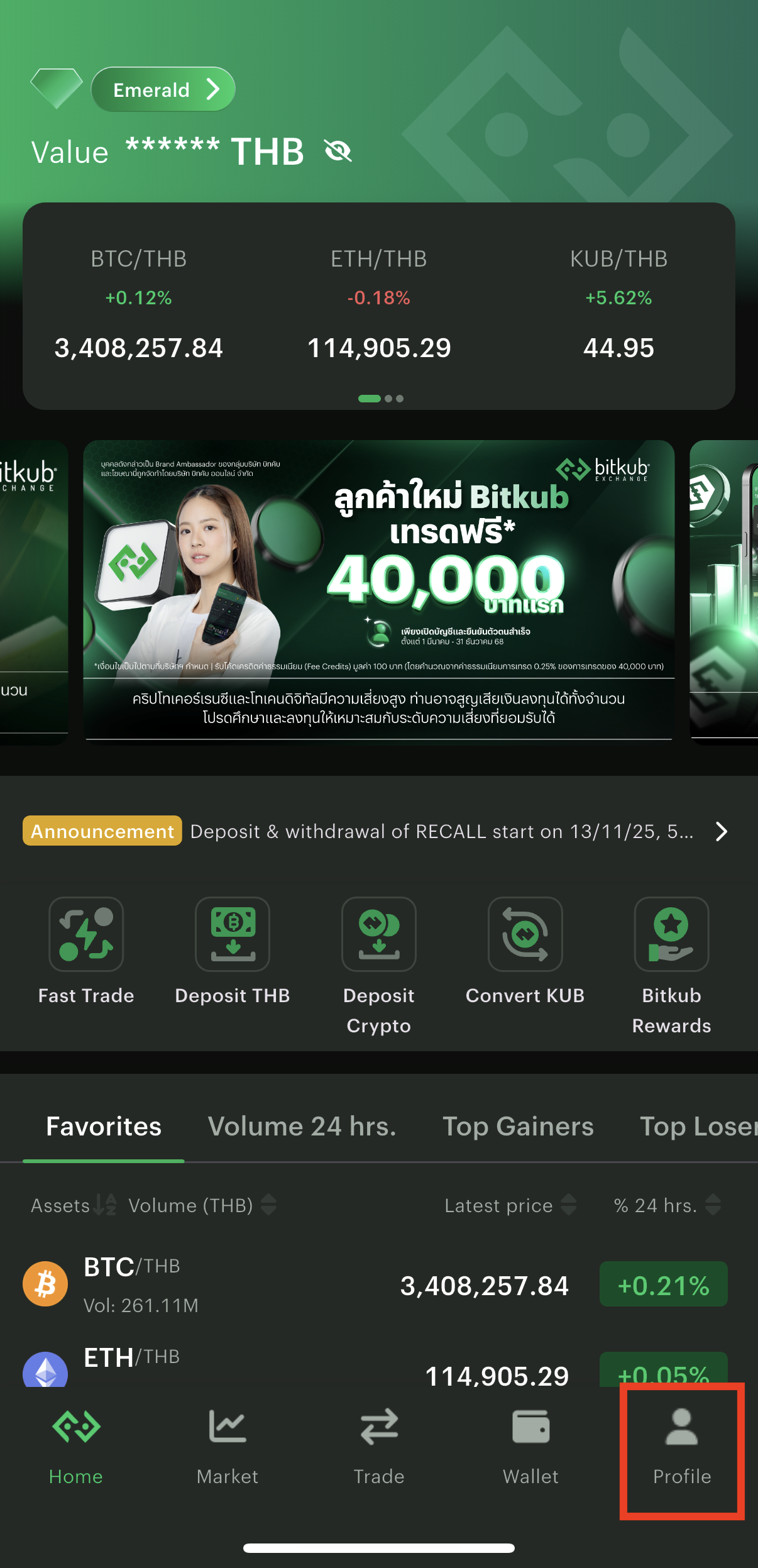 1. Open the Bitkub Exchange application and log in to your account.
