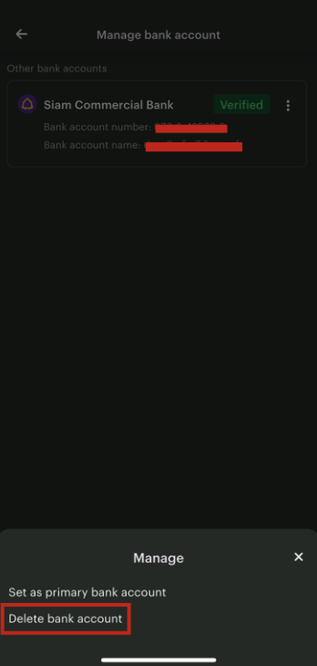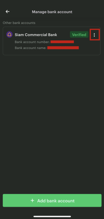 4. Tap on the bank account that you wish to remove from your Bitkub Account.