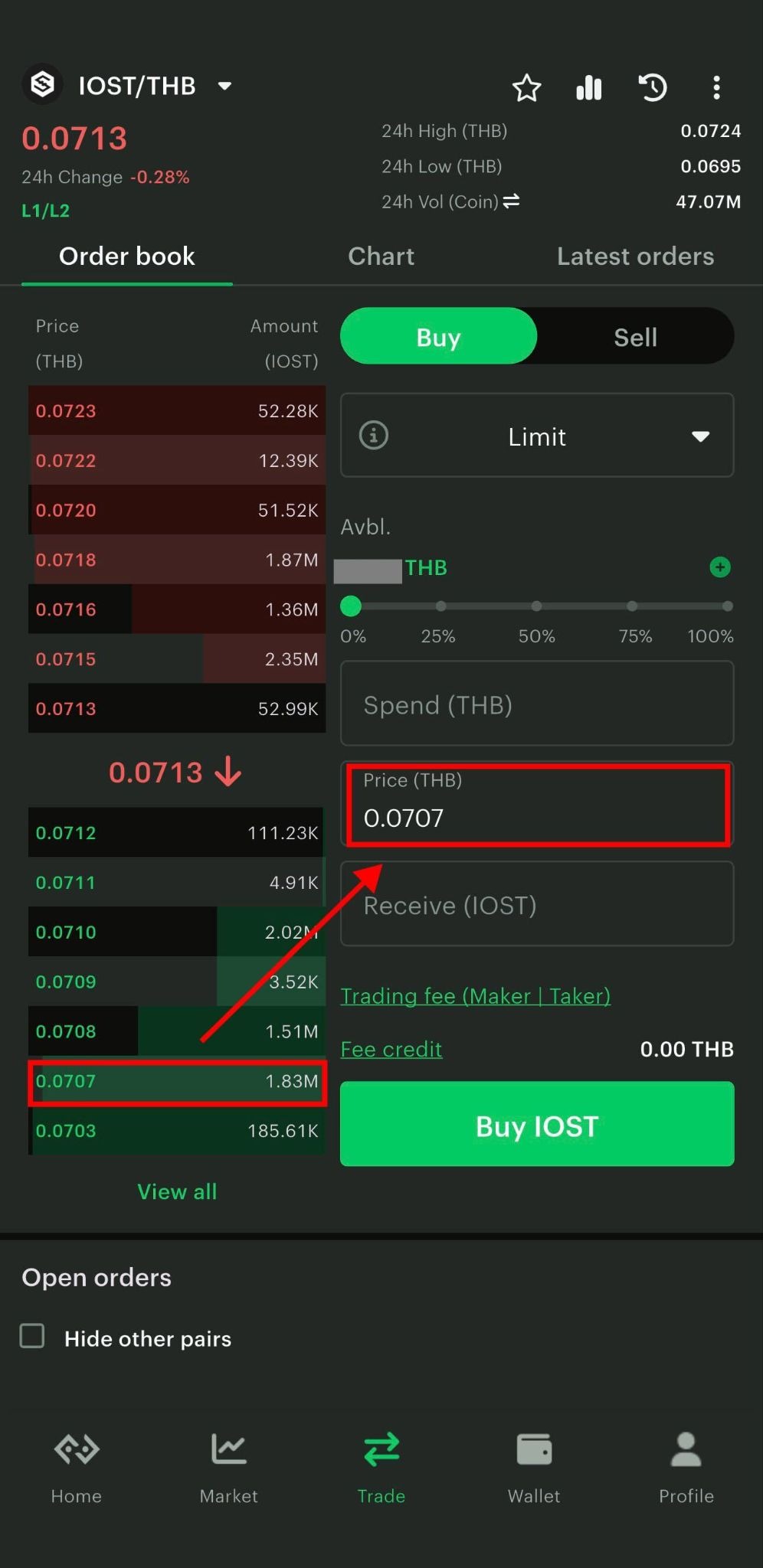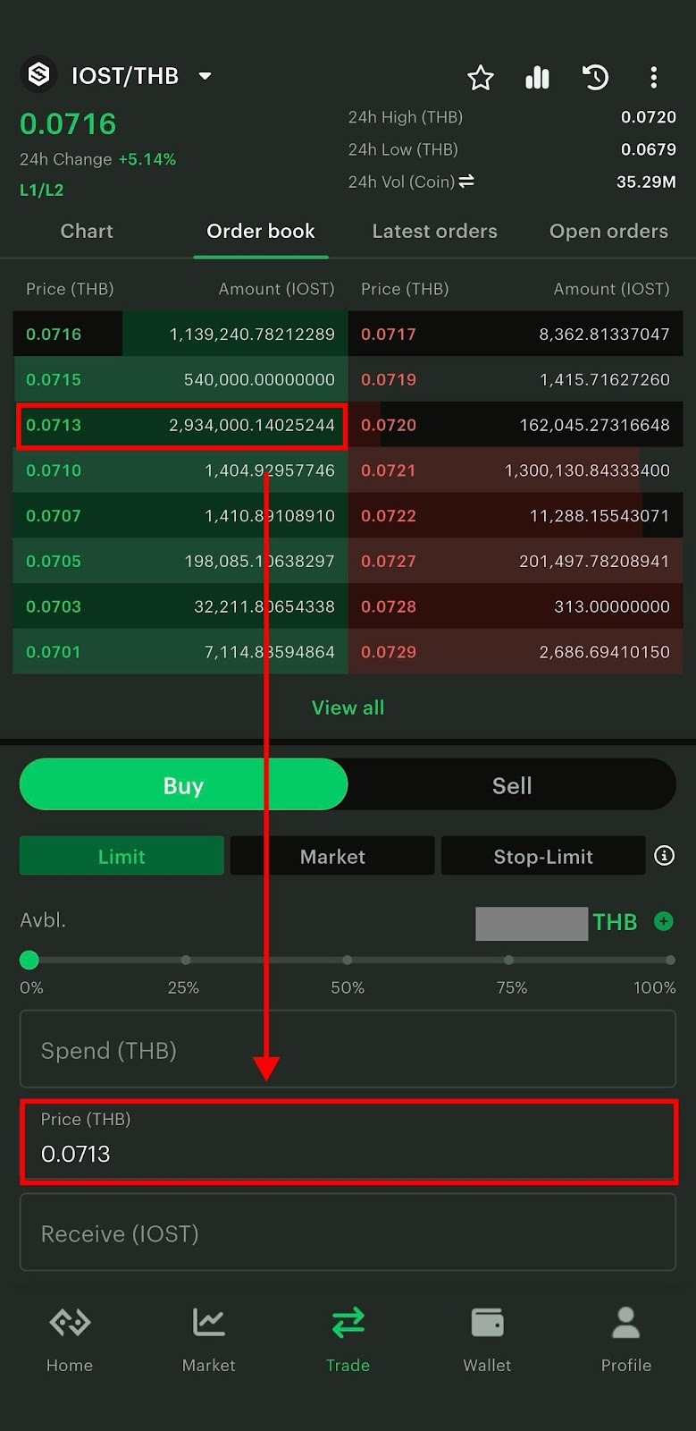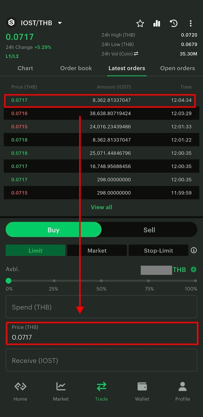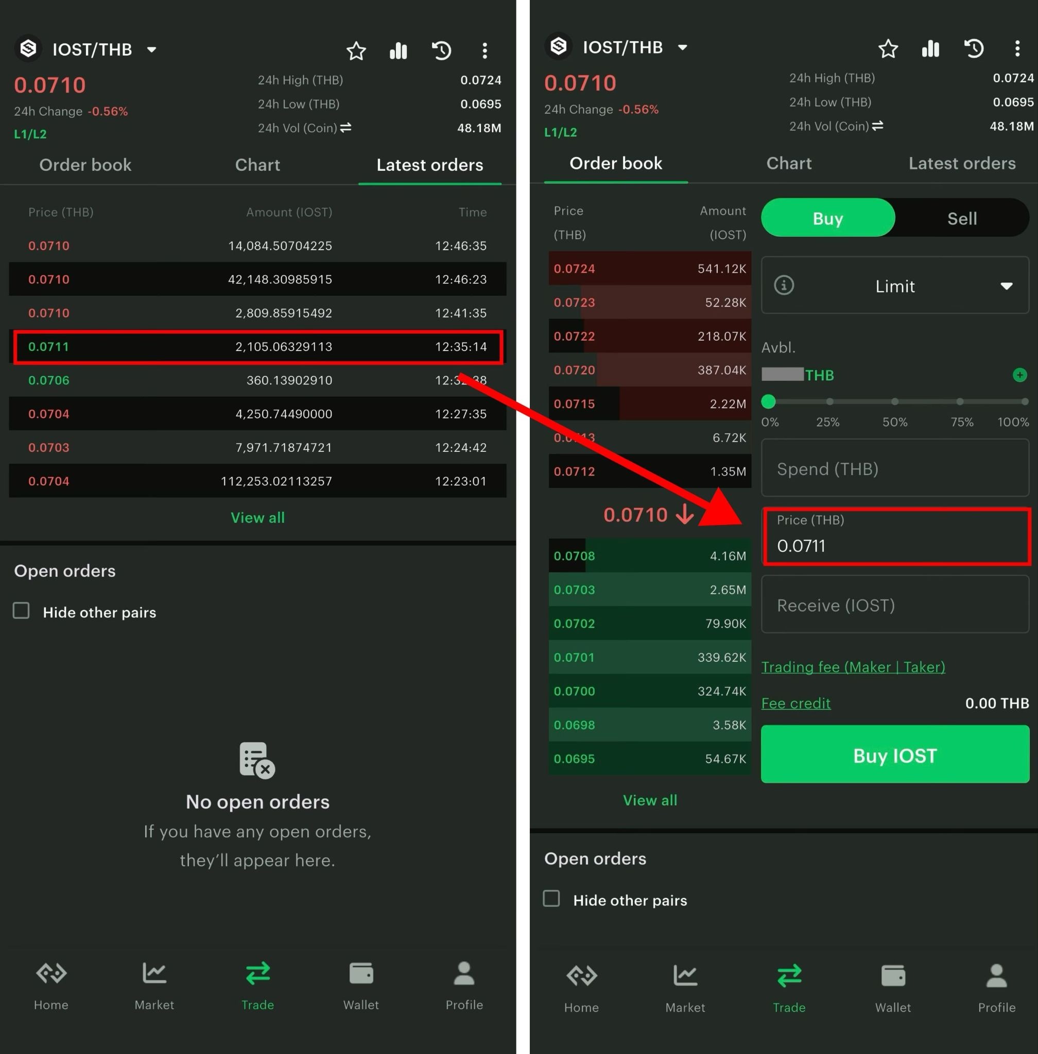 For your convenience, you can select your desired price from the Order Book or Latest Orders menus when creating a buy/sell order, in addition to manually entering the price. Here is how to set up an order.