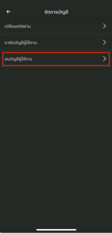 3. เลือกหัวข้อ “ลบบัญชีผู้ใช้งาน”