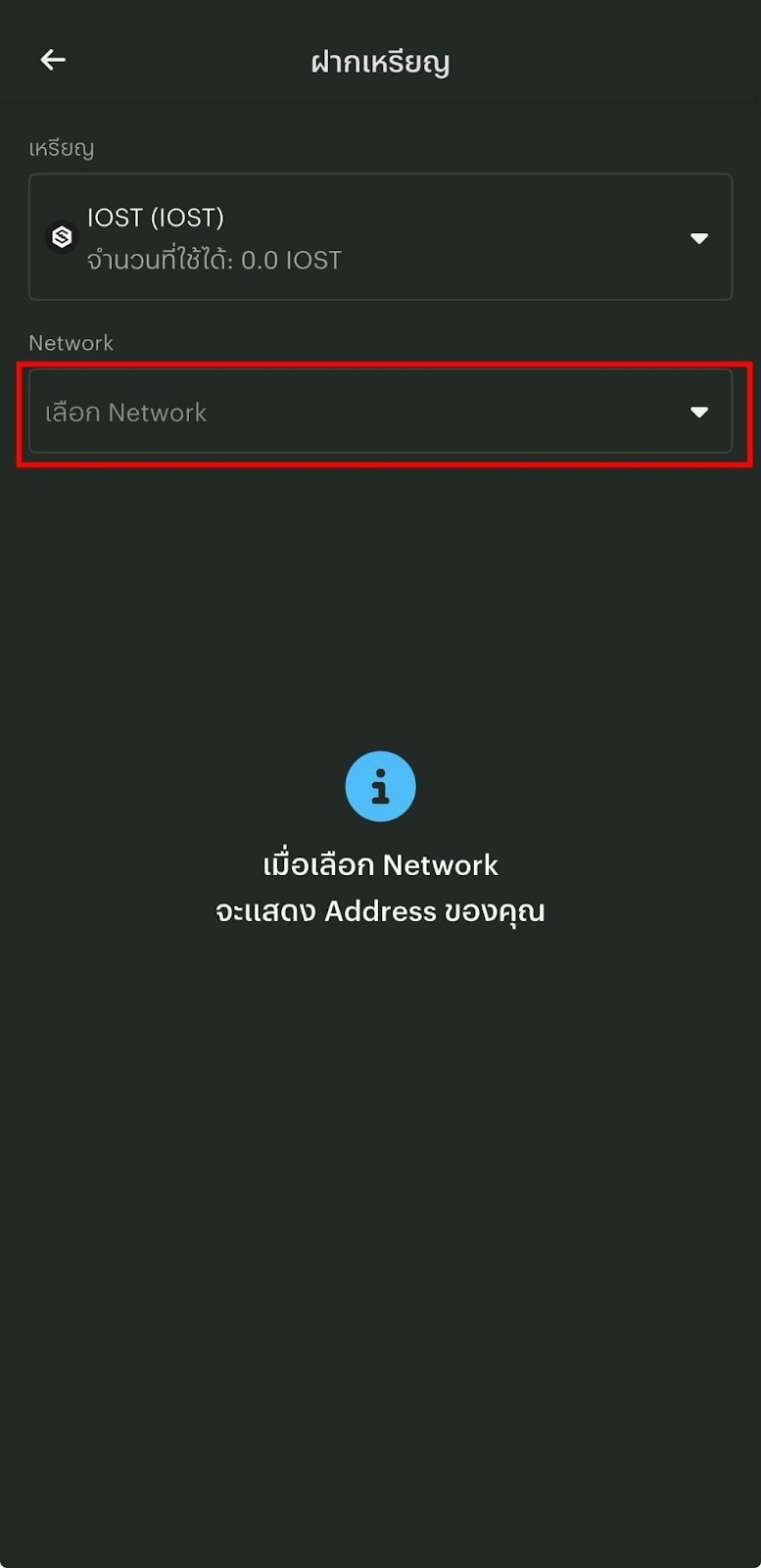 3. กดปุ่ม "ฝาก" และเลือกประเภทเหรียญที่ท่านต้องการฝาก