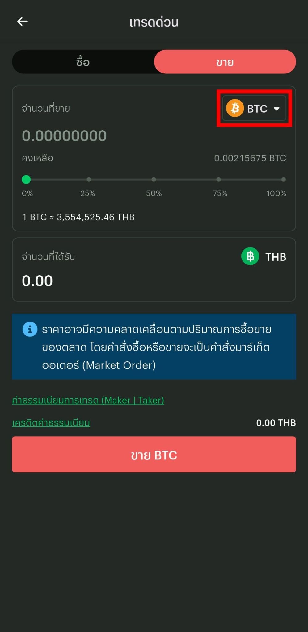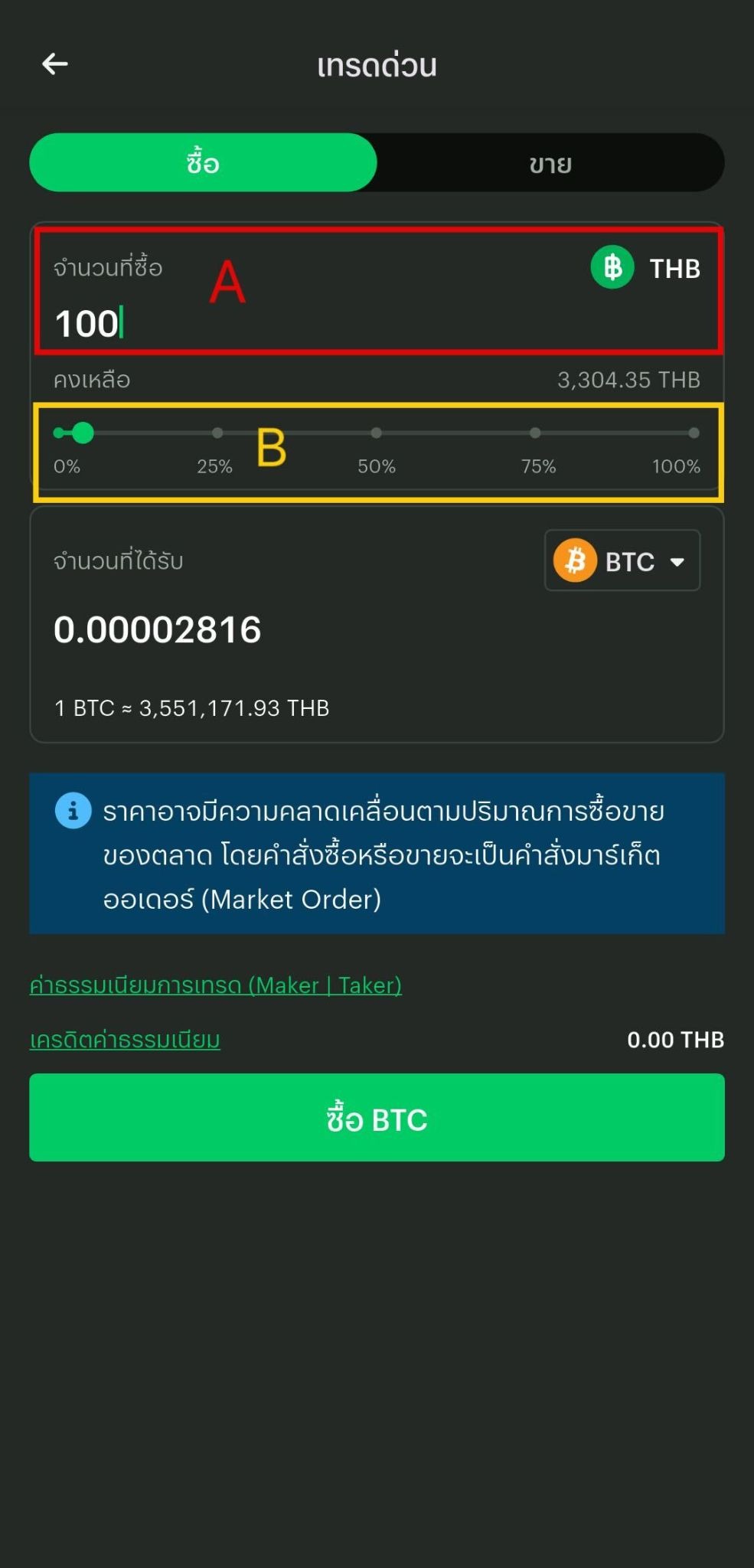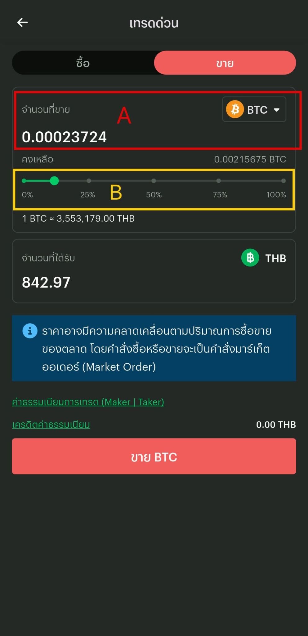 B. ท่านสามารถเลือกเปอร์เซ็นต์ของจำนวนเงินบาท หรือ จำนวนเหรียญที่มีเพื่อทำการซื้อหรือขาย