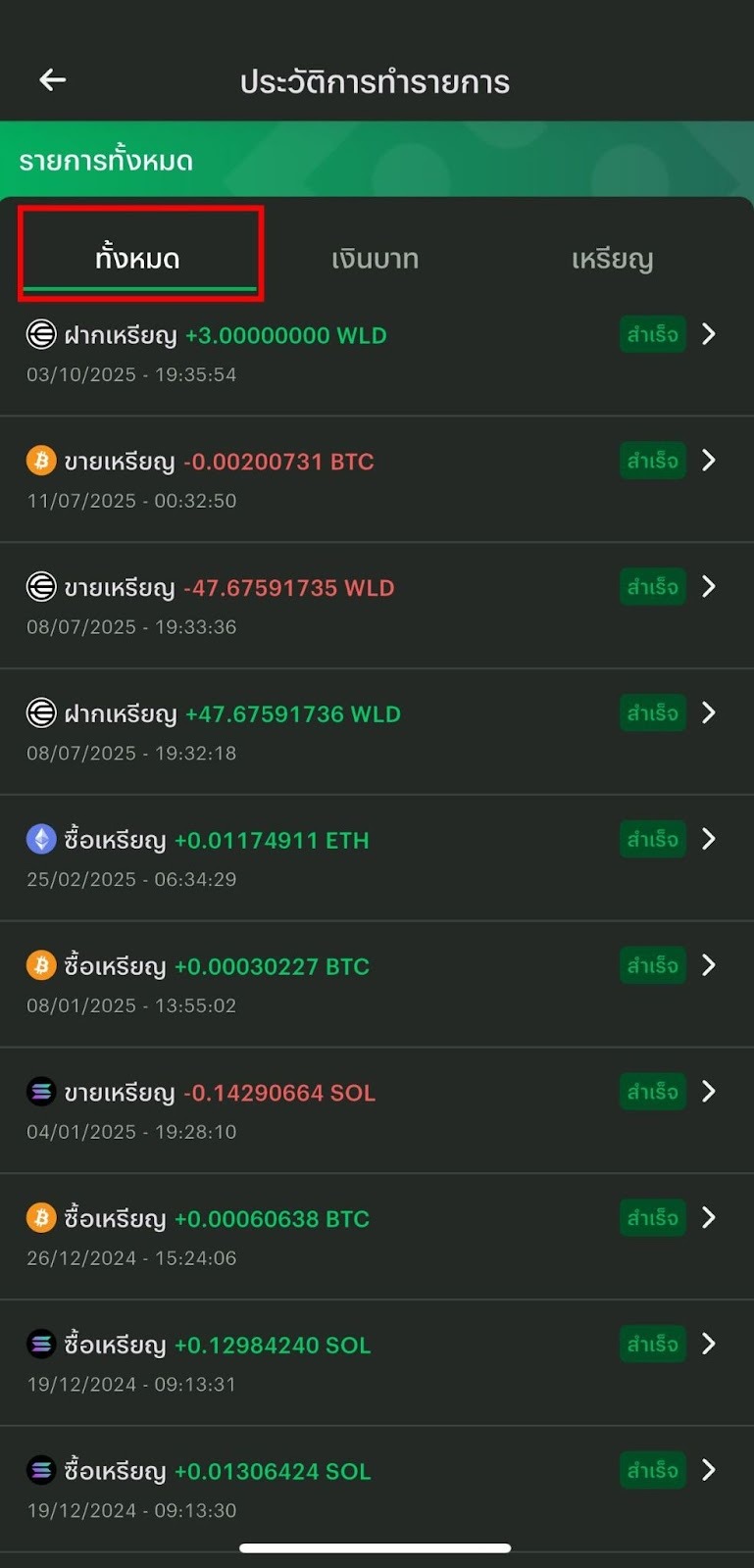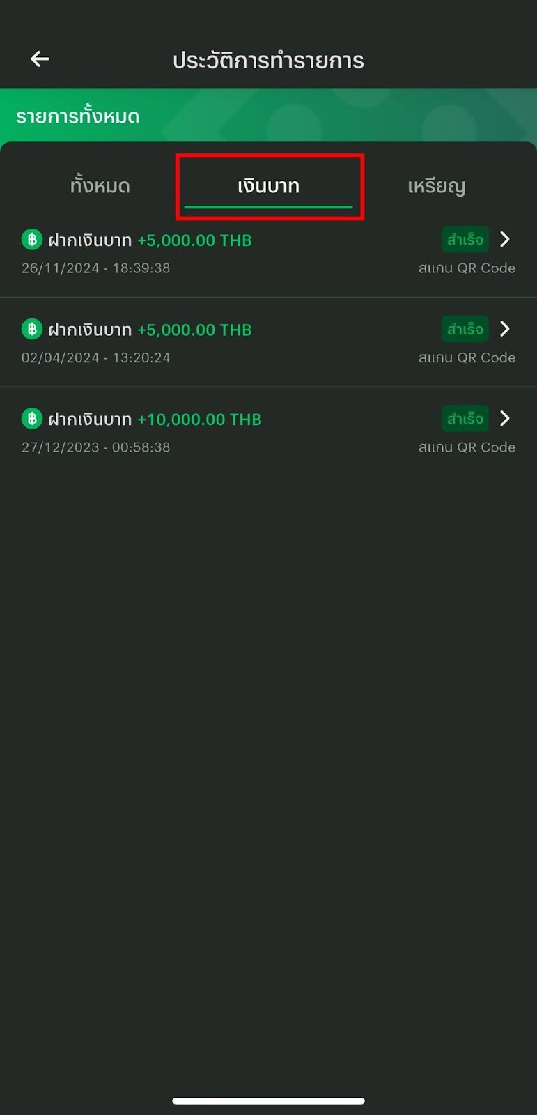 4. กดที่ "ทั้งหมด" เพื่อดูประวัติการทำธุรกรรมทั้งหมด