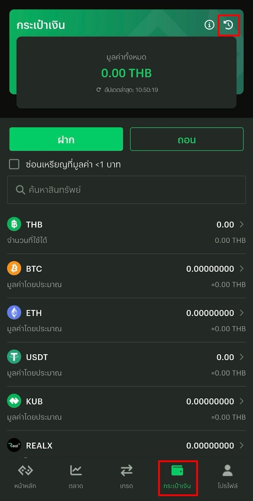 2. กดที่ปุ่ม “กระเป๋าเงิน” ตรงแถบเมนูด้านล่าง