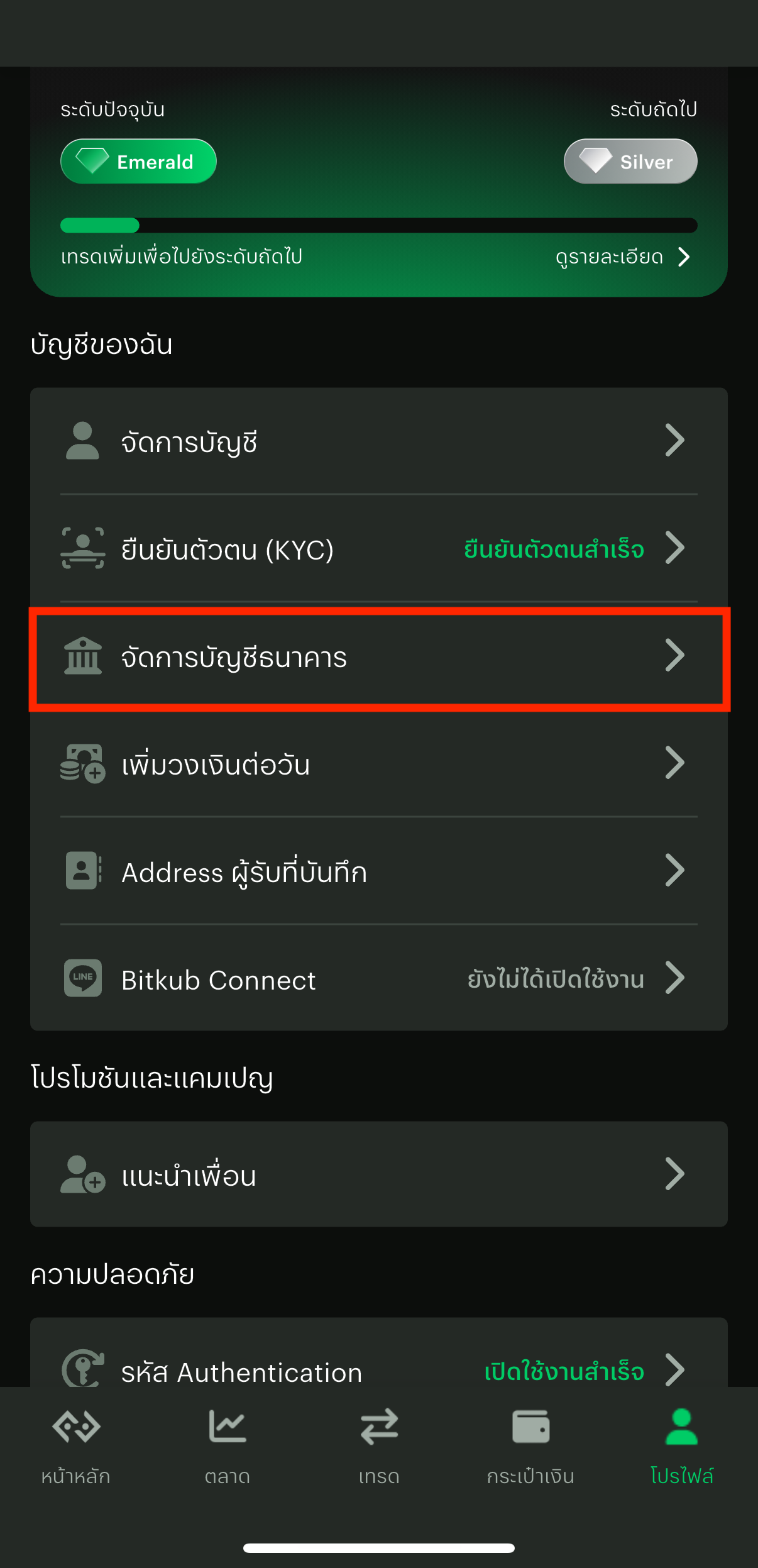 3. เลือกหัวข้อ "จัดการบัญชีธนาคาร"