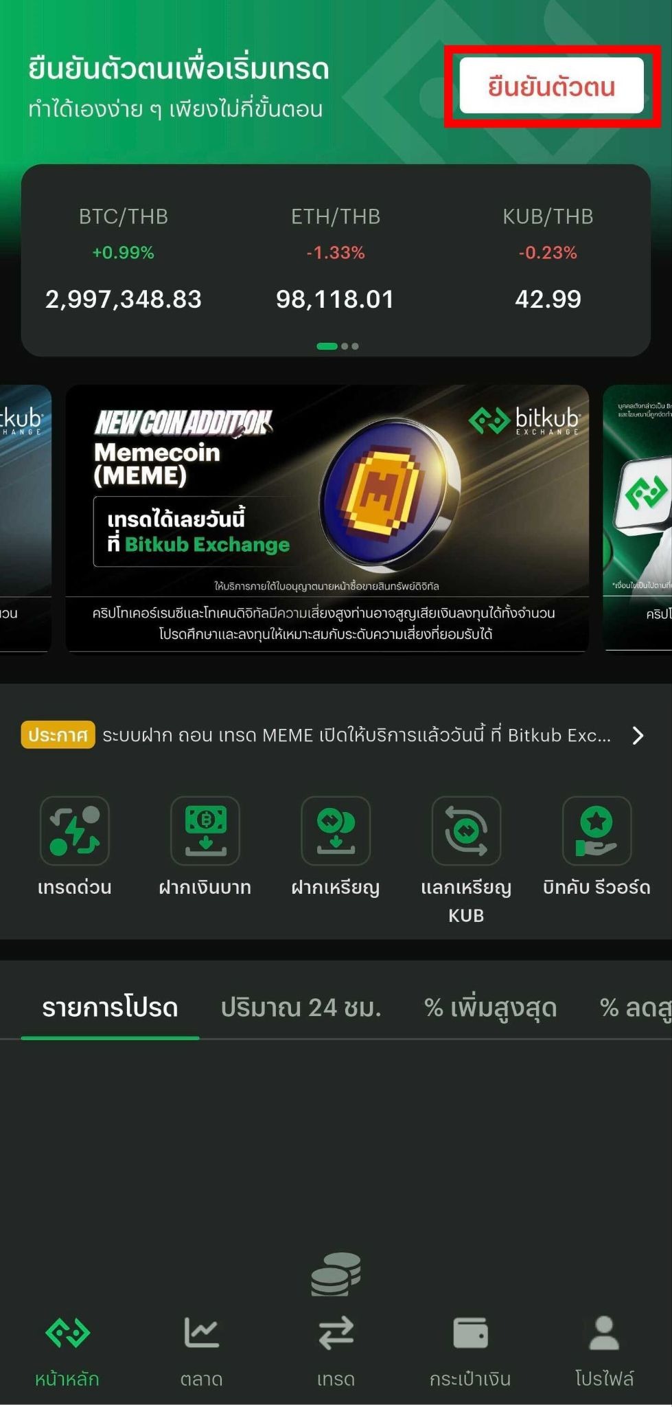 3.1 กด “ยืนยันตัวตน” ที่มุมบนขวา บนหน้าหลัก