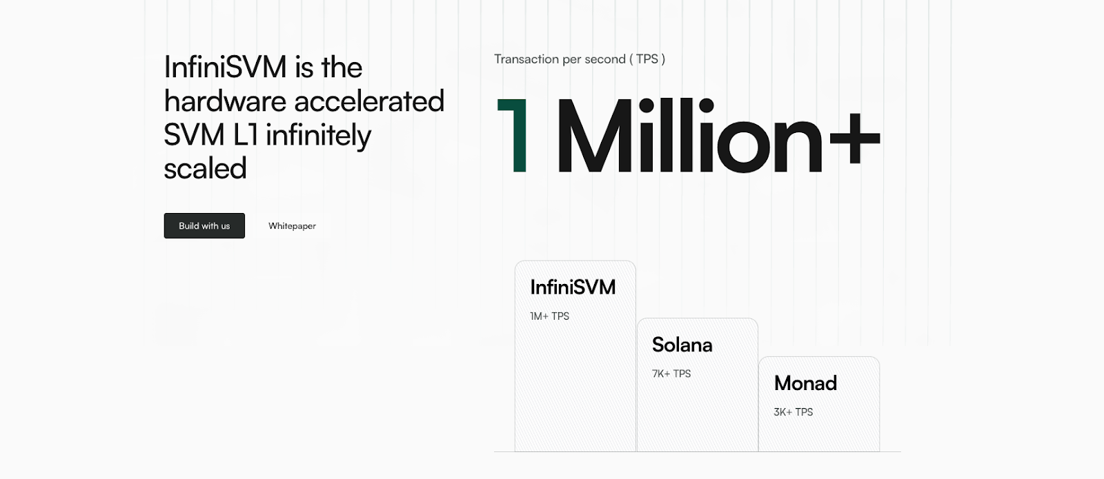 หัวใจสำคัญทางเทคโนโลยีของ Solayer คือ สถาปัตยกรรม InfiniSVM เครือข่ายบล็อกเชนที่ทำงานด้วยฮาร์ดแวร์รุ่นใหม่นี้มีเป้าหมายที่จะผลักดันประสิทธิภาพไปสู่ขีดจำกัดสูงสุด ด้วยการใช้ประโยชน์จาก Infiniband RDMA สำหรับการสื่อสารระหว่างโหนดที่เกือบจะถึงระดับไมโครวินาที และกลยุทธ์การควบคุมการทำงานพร้อมกันขั้นสูง โดย InfiniSVM ตั้งเป้าหมายไปที่ 1 ล้าน+ ธุรกรรมต่อวินาที (TPS) และแบนด์วิดธ์เครือข่าย 100Gbps+ แนวทางปฏิวัติวงการนี้มีจุดมุ่งหมายเพื่อถ่ายโอนส่วนประกอบบล็อกเชนไปยังชิปที่ตั้งโปรแกรมได้ ทำให้ dApps สามารถรองรับปริมาณงานที่สูงมากและมีเวลาแฝง (latency) ที่เกือบเป็นศูนย์