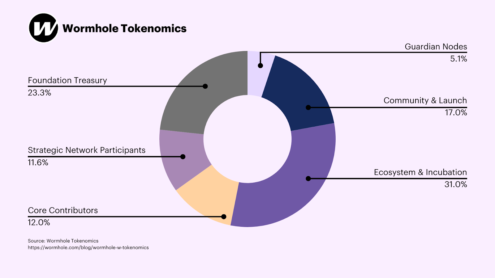 - Guardian nodes คิดเป็น 5.1%: Guardian Nodes มอบกลไกการตรวจสอบหลักผ่าน Wormhole ซึ่งเป็นส่วนสำคัญในการสร้างความปลอดภัยโดยรวมของเครือข่าย